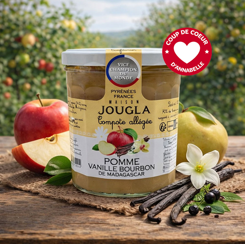 Ingrédients : Pommes (94%), sucre, Vanille Bourbon De Madagascar (0,12%) jus de citron.